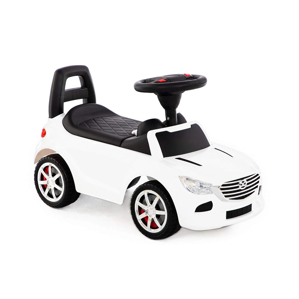 Mașinuța este dotată cu volan cu semnal sonor, oferind un plus de realism și distracție în timpul jocului. Șezutul este confortabil și stabil, iar spătarul ajută copilul să stea corect și în siguranță.