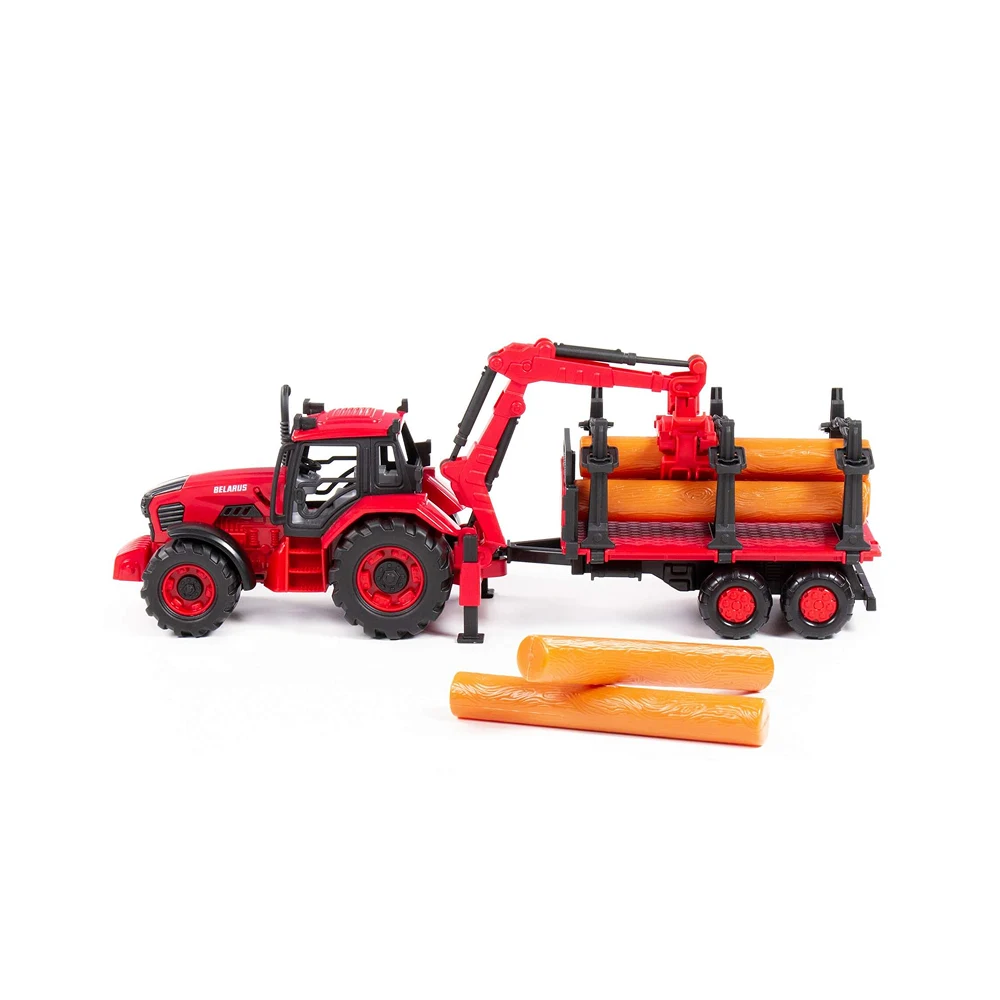 Tractor de jucărie robust, cu sistem de inerție, macara mobilă pentru lemne și remorcă, ideal pentru jocuri de construcție și aventuri agricole. O jucărie atractivă care stimulează imaginația copiilor și joaca activă.