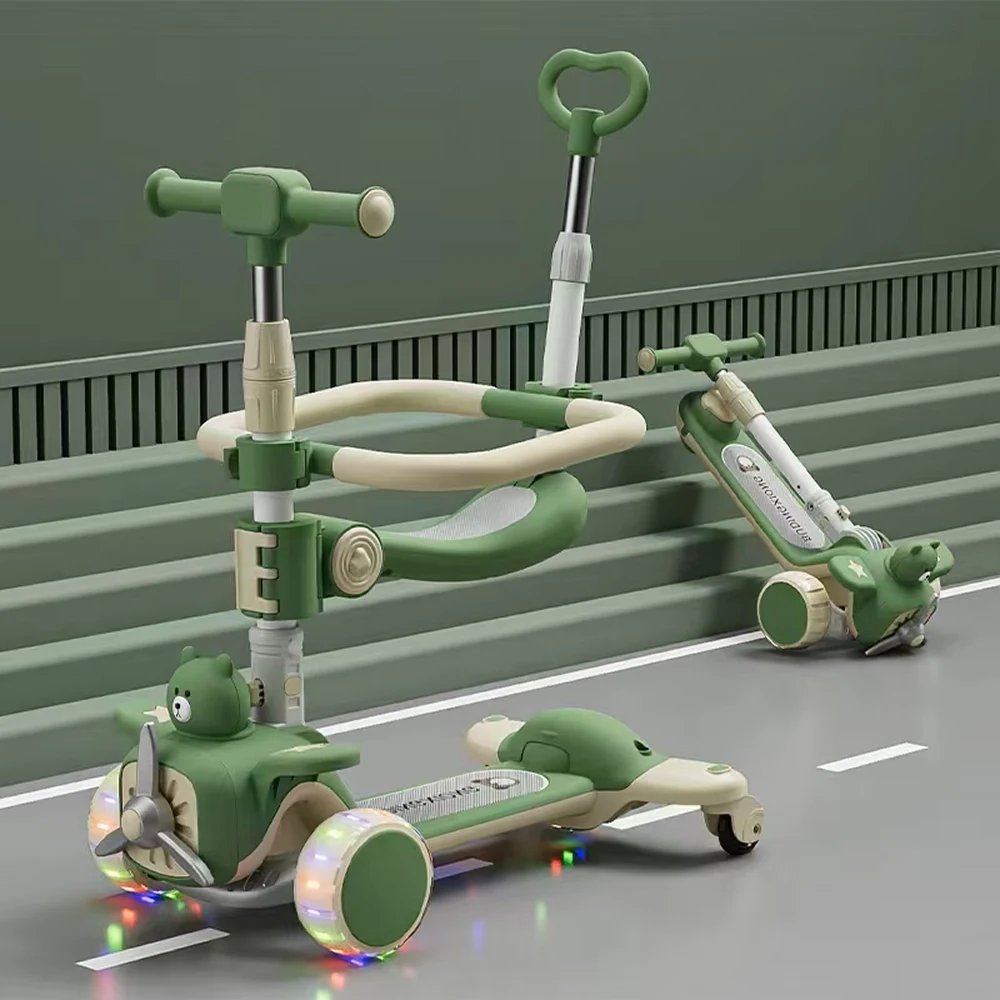 Trotinetă pentru copii 6 în 1 cu scaun, mâner parental, roți luminoase și muzică