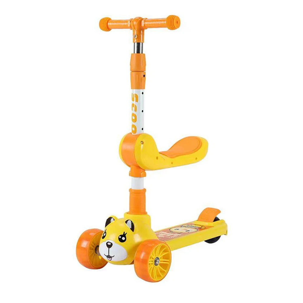 Trotinetă pentru copii 2 în 1 cu scaun, 3 roți luminoase, muzică și lumini