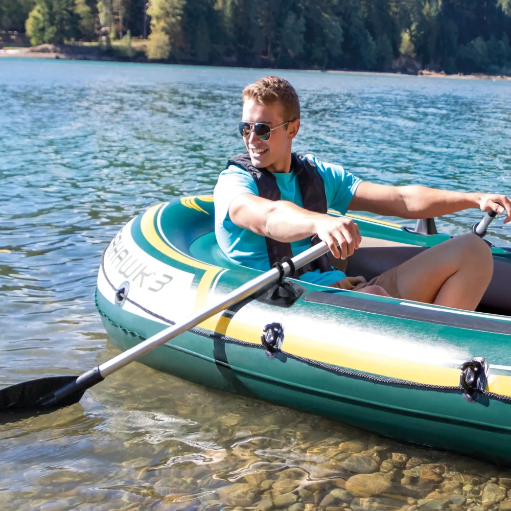 Setul include două vâsle, fiind compatibil cu mai multe modele de bărci gonflabile Intex.