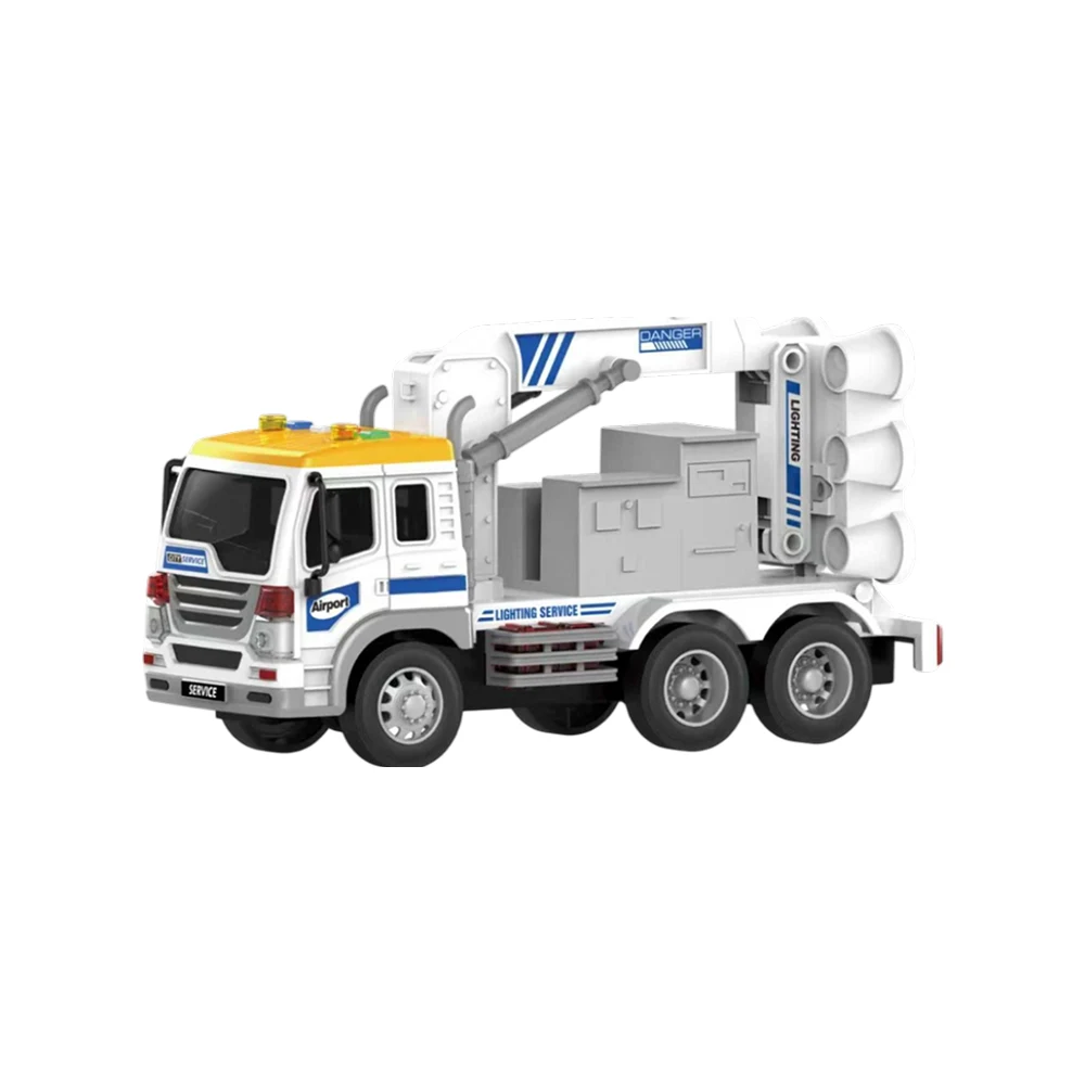 Vehicul de servicii aeroportuare pentru copii, cu sistem cu inerție, lumini și sunete, realizat la scară 1:16, ideal pentru jocuri de rol tematice.
